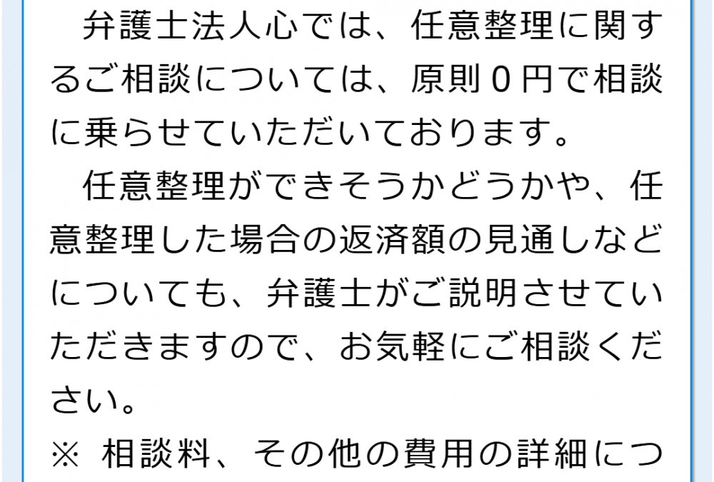 任意整理のご相談は原則無料で承っておりますので、費用が気になる方でも気兼ねなく相談をしていただけるかと思います。
