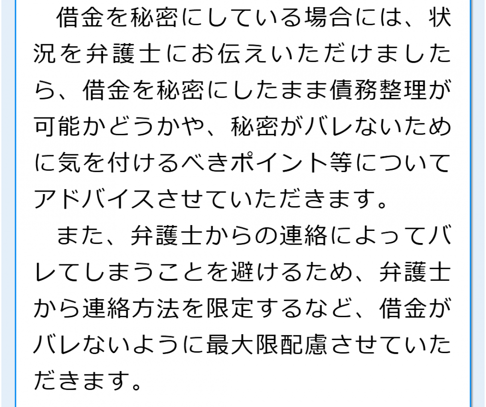 当法人の弁護士はそれぞれ担当分野を持っており、任意整理等の借金の問題を担当する弁護士もいます。どのような弁護士がいるかについてはこちらでご確認ください。